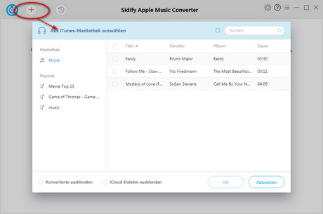 Tipp: Wollen Sie einzelne oder mehrere Songs hinzufügen , wählen Sie die Option Datei zur Mediathek hinzufügen. eine Datei oder einen Ordner und klicke auf „Öffnen“.